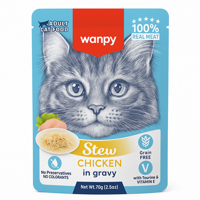 پوچ گربه ونپی انگلیسی نویس طعم مرغ در سس گریوی وزن ۷۰ گرم، محصولی با کیفیت و خوشطعم برای تغذیه سالم و خوشمزه گربهها، تهیه شده از مرغ تازه با سس گریوی لطیف که به حفظ سلامت و نشاط حیوان خانگی شما کمک میکند.