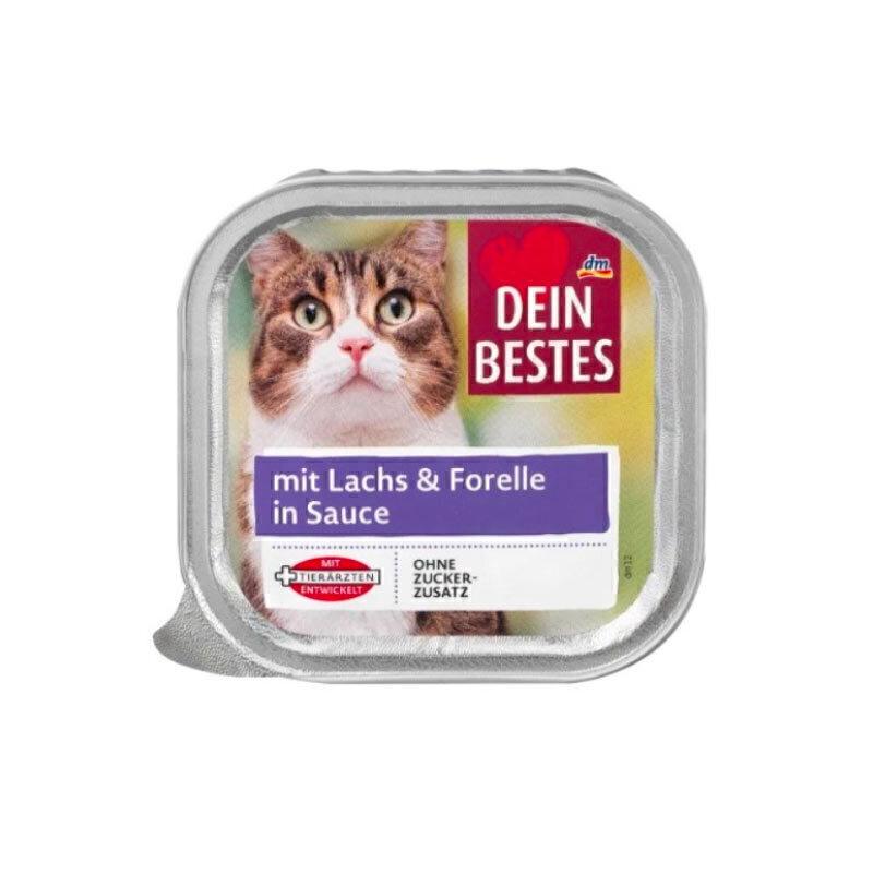 ووم گربه دین بستس (Dein Bestes) با طعم ترکیبی سالمون و قزلآلا در سس طبیعی، غذایی فوقالعاده خوشبو، مقوی و اشتهاآور برای گربههای بالغ است. ترکیب دو نوع ماهی چرب و غنی از اسیدهای چرب امگا‑۳ و امگا‑۶ سبب میشود پوست گربه نرمتر، موها براقتر و سیستم ایمنی بدنش قویتر عمل کند. این غذای مرطوب آلمانی، با فرمولی علمی و بدون افزودن قند، مواد نگهدارنده یا رنگ مصنوعی تهیه شده و برای تمامی نژادهای گربههای بالغ مناسب است. بافت لطیف و رطوبت بالا، به حفظ سلامت دستگاه ادراری و گوارش نیز کمک میکند.